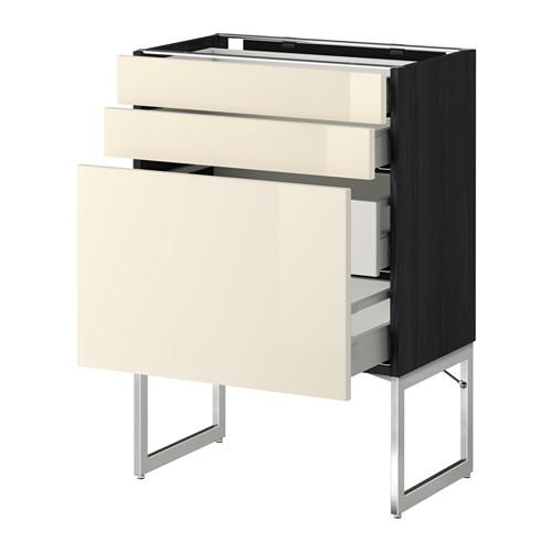 МЕТОД / МАКСИМЕРА Напольн шкаф 3фронт пнл/2низ/2ср ящ - 60x37x60 см, Рингульт глянцевый кремовый, под дерево черный