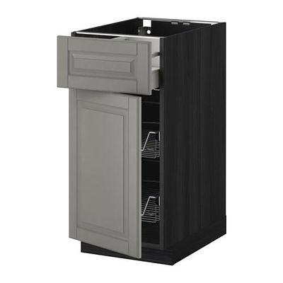 МЕТОД / МАКСИМЕРА Напольн шкаф с пров корз/ящ/дверью - 40x60 см, Будбин серый, под дерево черный