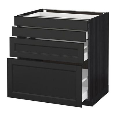 МЕТОД / МАКСИМЕРА Напольн шкаф 4 фронт панели/4 ящика - 80x60 см, Лаксарби черно-коричневый, под дерево черный