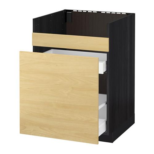 МЕТОД / МАКСИМЕРА Нап шкаф п/мойку ДУМШЁ/3фасада/2ящ - 60x60 см, Тингсрид под березу, под дерево черный
