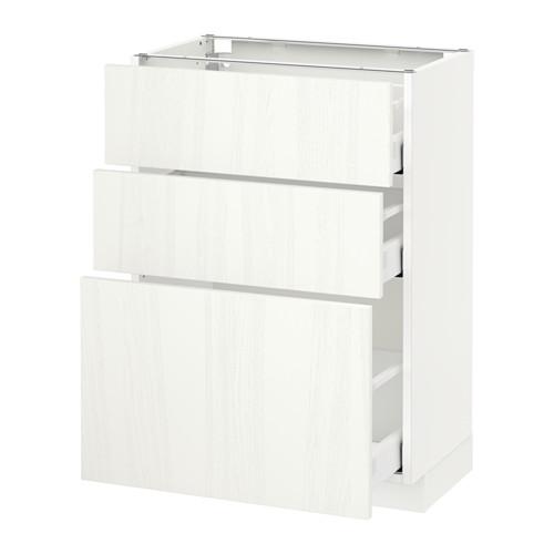 МЕТОД / МАКСИМЕРА Напольный шкаф с 3 ящиками - 60x37 см, Росдаль белый ясень, белый