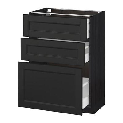 МЕТОД / МАКСИМЕРА Напольный шкаф с 3 ящиками - 60x37 см, Лаксарби черно-коричневый, под дерево черный