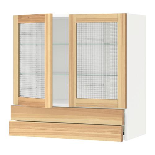 МЕТОД / ФОРВАРА Навесной шкаф/2 стек дв/2 ящика - белый, Торхэмн естественный ясень, 80x80 см