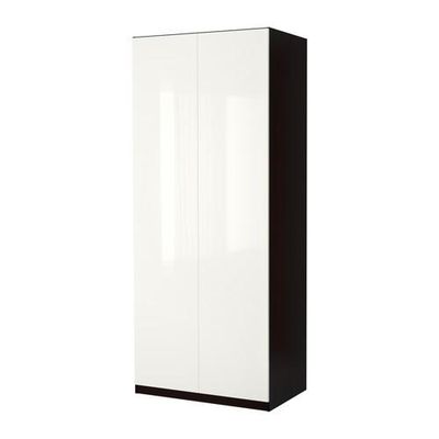 ПАКС Гардероб 2-дверный - Пакс Фардаль глянцевый белый, черно-коричневый, 100x37x201 см, плавно закрывающиеся петли