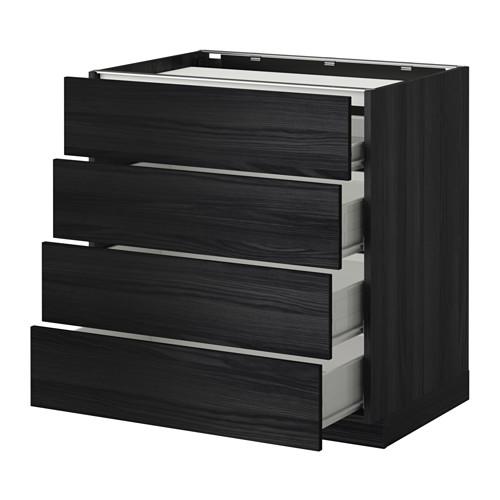 МЕТОД / ФОРВАРА Напольн шкаф/4фронт пнл/4ящика - 80x60 см, Тингсрид под дерево черный, под дерево черный