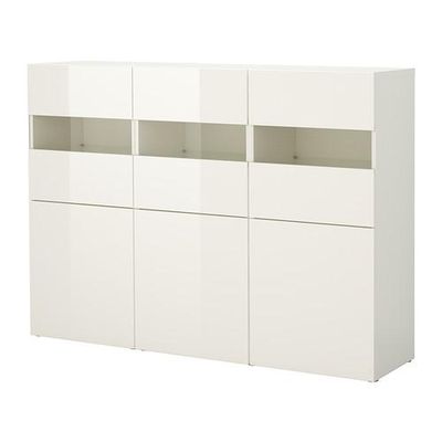 БЕСТО Комбинация д/хранения с зерк дверц - белый/глянцевый белый