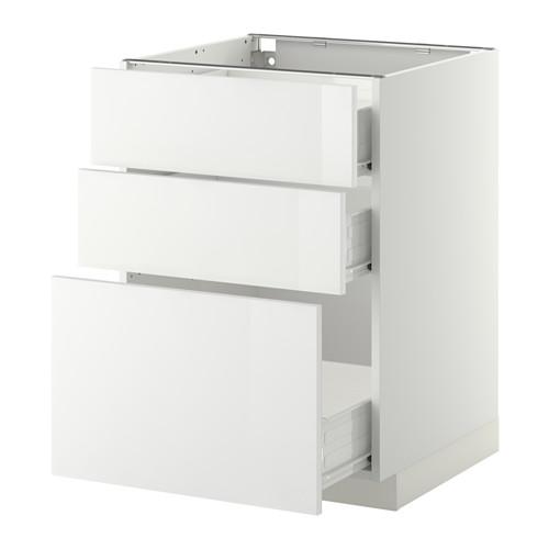 МЕТОД / ФОРВАРА Нплн шк 3 фрнт/3 средн ящика - белый, Рингульт глянцевый белый, 60x60 см