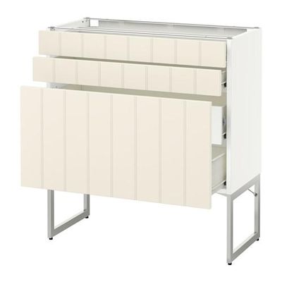 МЕТОД / ФОРВАРА Напольн шкаф 3фронт пнл/2низ/2ср ящ - 80x37x60 см, Хитарп белый с оттенком, белый