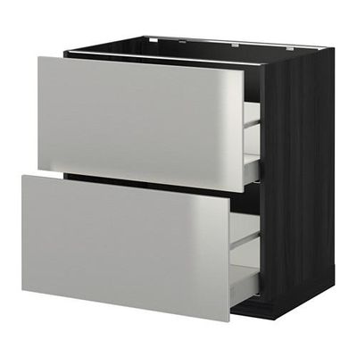 МЕТОД / МАКСИМЕРА Напольн шкаф 2фрнт/2выс ящ - 80x60 см, Гревста нержавеющ сталь, под дерево черный