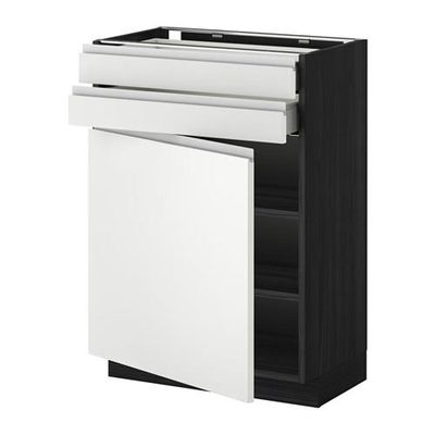 МЕТОД / МАКСИМЕРА Напольный шкаф с дверцей/2 ящиками - 60x37 см, Нодста белый/алюминий, под дерево черный