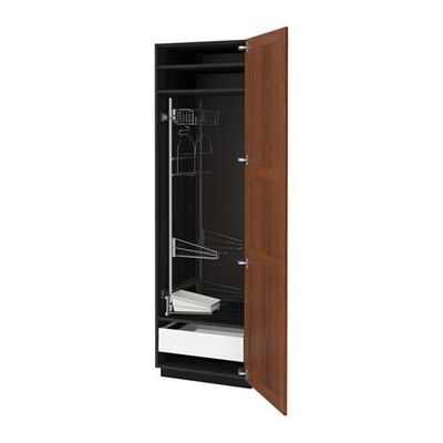 МЕТОД / МАКСИМЕРА Выс шк с отд д/акс д/убрк - 60x60x200 см, Филипстад коричневый, под дерево черный
