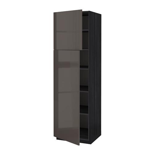 МЕТОД Высокий шкаф с полками/2 дверцы - под дерево черный, Рингульт глянцевый серый, 60x60x200 см