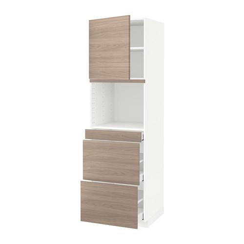 МЕТОД / МАКСИМЕРА Высокий шкаф д/СВЧ/дверца/3ящика - белый, Брокхульт под грецкий орех светло-серый, 60x60x200 см