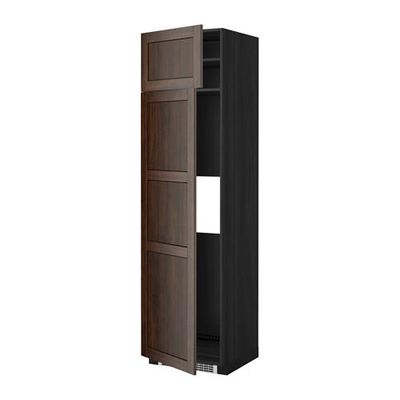 МЕТОД Выс шкаф д/холодильн или морозильн - 60x60x220 см, Эдсерум под дерево коричневый, под дерево черный