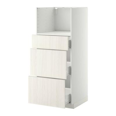 МЕТОД / ФОРВАРА Высокий шкаф д/СВЧ с 3 ящиками - Росдаль белый ясень, белый