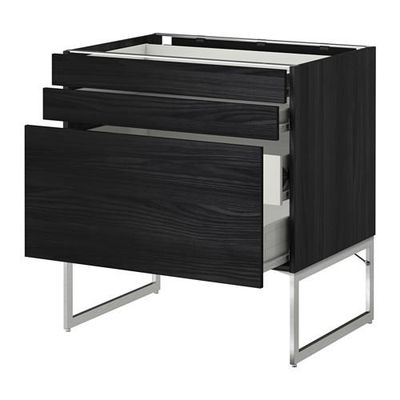 МЕТОД / ФОРВАРА Напольн шкаф 3фронт пнл/2низ/2ср ящ - 80x60x60 см, Тингсрид под дерево черный, под дерево черный