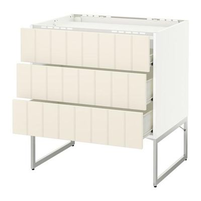 МЕТОД / ФОРВАРА Напольн шкаф/3фронт пнл/3ящика - 80x60x60 см, Хитарп белый с оттенком, белый