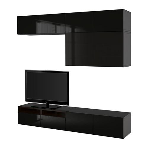БЕСТО Шкаф для ТВ, комбин/стеклян дверцы - черно-коричневый/Сельсвикен глянцевый/черный дымчатое стекло, направляющие ящика, плавно закр