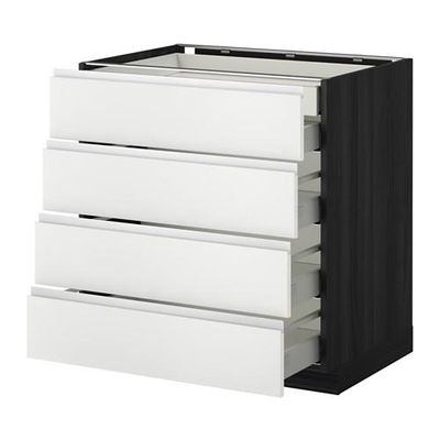 МЕТОД / МАКСИМЕРА Нплн шк 4фрнт/2нзк/3срд ящ - 80x60 см, Нодста белый/алюминий, под дерево черный