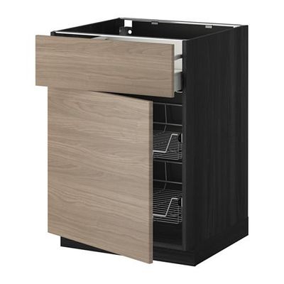 МЕТОД / МАКСИМЕРА Напольн шкаф с пров корз/ящ/дверью - 60x60 см, Брокхульт под грецкий орех светло-серый, под дерево черный