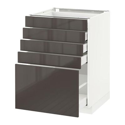 МЕТОД / МАКСИМЕРА Напольный шкаф с 5 ящиками - 60x60 см, Рингульт глянцевый серый, белый