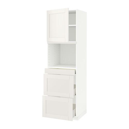 МЕТОД / ФОРВАРА Высокий шкаф д/СВЧ/дверца/3ящика - белый, Сэведаль белый, 60x60x200 см