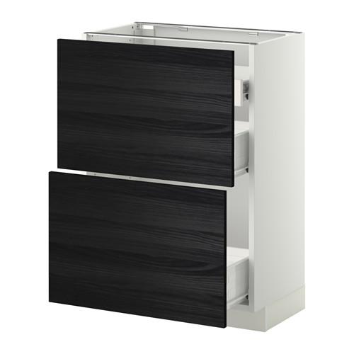 МЕТОД / ФОРВАРА Нап шкаф 2 фрнт пнл/1низк/2ср ящ - белый, Тингсрид под дерево черный, 60x37 см