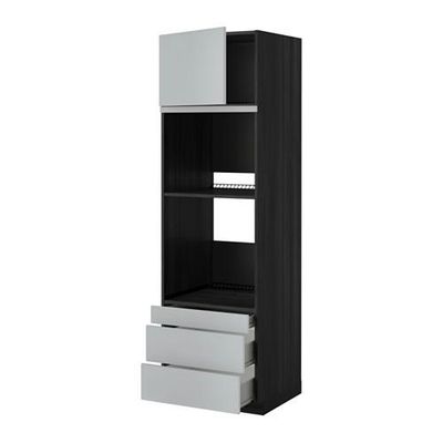 МЕТОД / ФОРВАРА Выс шкаф д/дхвк/комб дхвк+двр/3ящ - 60x60x200 см, Веддинге серый, под дерево черный