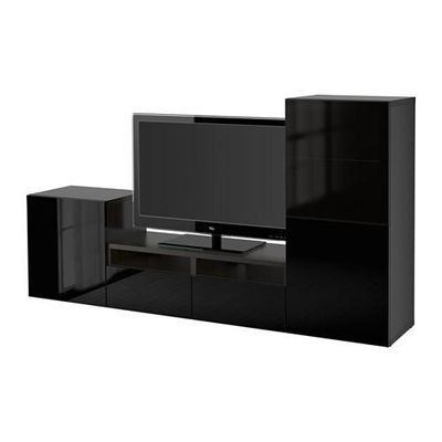 БЕСТО Шкаф для ТВ, комбин/стеклян дверцы - черно-коричневый/Сельсвикен глянцевый/черный дымчатое стекло, направляющие ящика,нажимные
