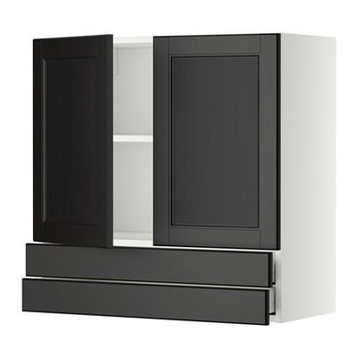 МЕТОД / МАКСИМЕРА Навесной шкаф/2дверцы/2ящика - 80x80 см, Лаксарби черно-коричневый, белый