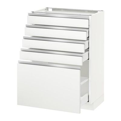 МЕТОД / МАКСИМЕРА Напольный шкаф с 5 ящиками - 60x37 см, Нодста белый/алюминий, белый