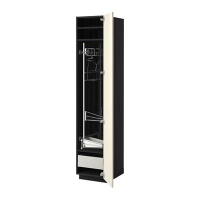 МЕТОД / МАКСИМЕРА Выс шк с отд д/акс д/убрк - 40x60x200 см, Рингульт глянцевый кремовый, под дерево черный