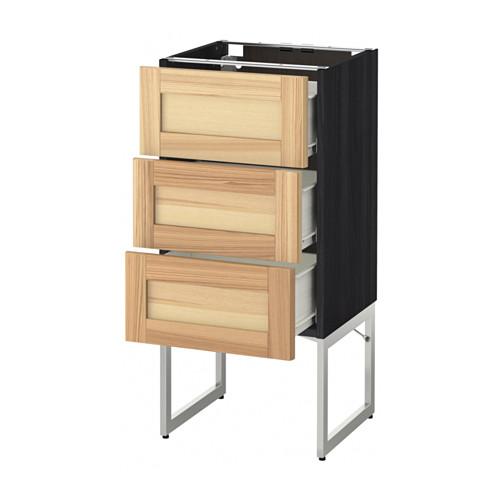 МЕТОД / ФОРВАРА Нплн шк 3 фрнт/3 средн ящика - под дерево черный, Торхэмн естественный ясень, 40x37x60 см