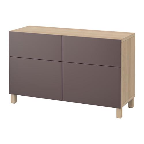 БЕСТО Комб для хран с дверц/ящ - под беленый дуб/Вальвикен темно-коричневый, направляющие ящика, плавно закр