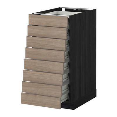 МЕТОД / ФОРВАРА Наполн шкаф 8 фронт/8 низк ящиков - 40x60 см, Брокхульт под грецкий орех светло-серый, под дерево черный
