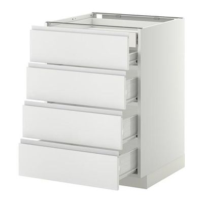 МЕТОД / ФОРВАРА Нплн шк 4фрнт/2нзк/3срд ящ - 60x60 см, Нодста белый/алюминий, белый