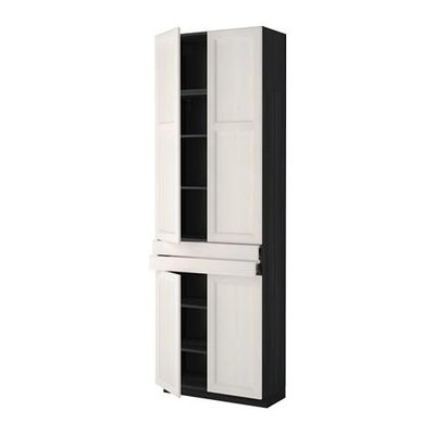 МЕТОД / ФОРВАРА Высокий шкаф+полки/2 ящика/4 дверцы - Лаксарби белый, под дерево черный