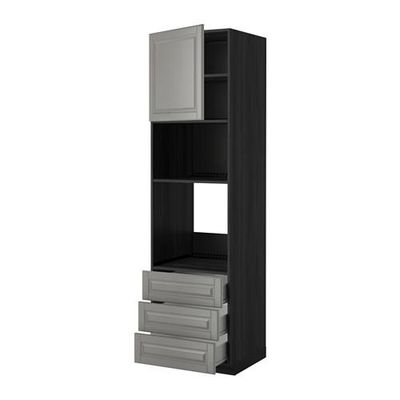 МЕТОД / ФОРВАРА Высок шкаф д/духовки/СВЧ/дверца/3ящ - 60x60x220 см, Будбин серый, под дерево черный
