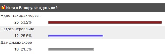 Около года назад на нашем сайте проводилось голосование: "ИКЕА в Беларуси: ждать ли...?". На тот момент более половины проголосовавших ответили, что ИКЕА в Беларуси появится через несколько лет. Около четверти респондентов посчитали, что ИКЕА в Беларуси - это нереально. Оставшиеся оптимисты решили, что "ИКЕИ" в Беларуси БЫТЬ и очень скоро. 28 февраля этого года на этот вопрос был получен почти официальный ответ из уст менеджера по развитию бизнеса IKEA в странах Балтии Ингвара Нильссона...