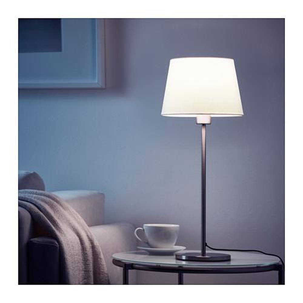 Текстильный абажур, мягко рассеивающий свет, создает в комнате уютную и располагающую атмосферу.