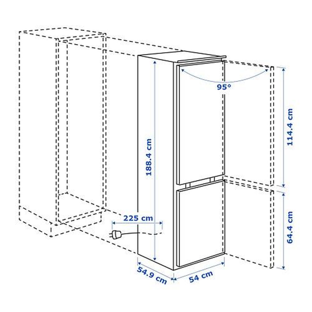 Этот встраиваемый холодильник/морозильник предназначен для установки в кухонный шкаф.