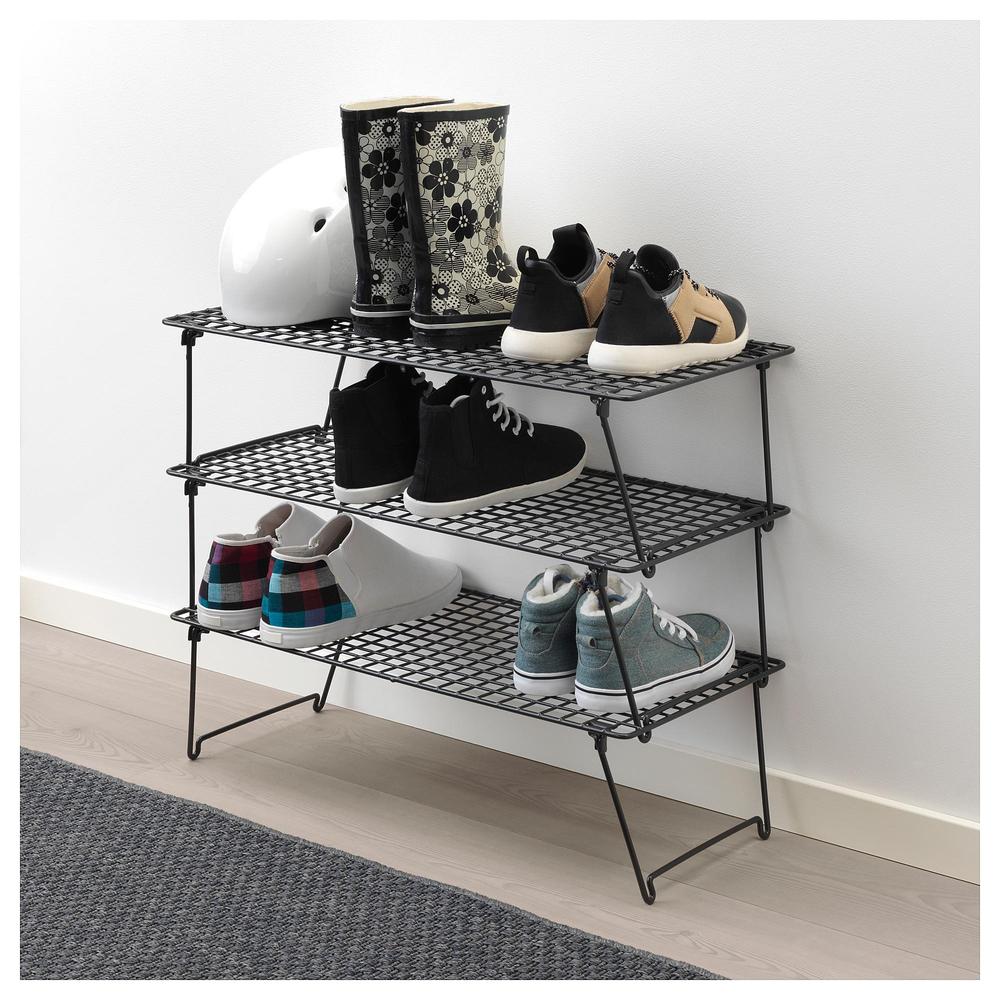 -Можно поставить в прихожей для повседневной обуви или в гардероб для сезонного хранения. Полка легко раскладывается, поэтому вы можете поставить дополнительную полку, когда приходят гости.