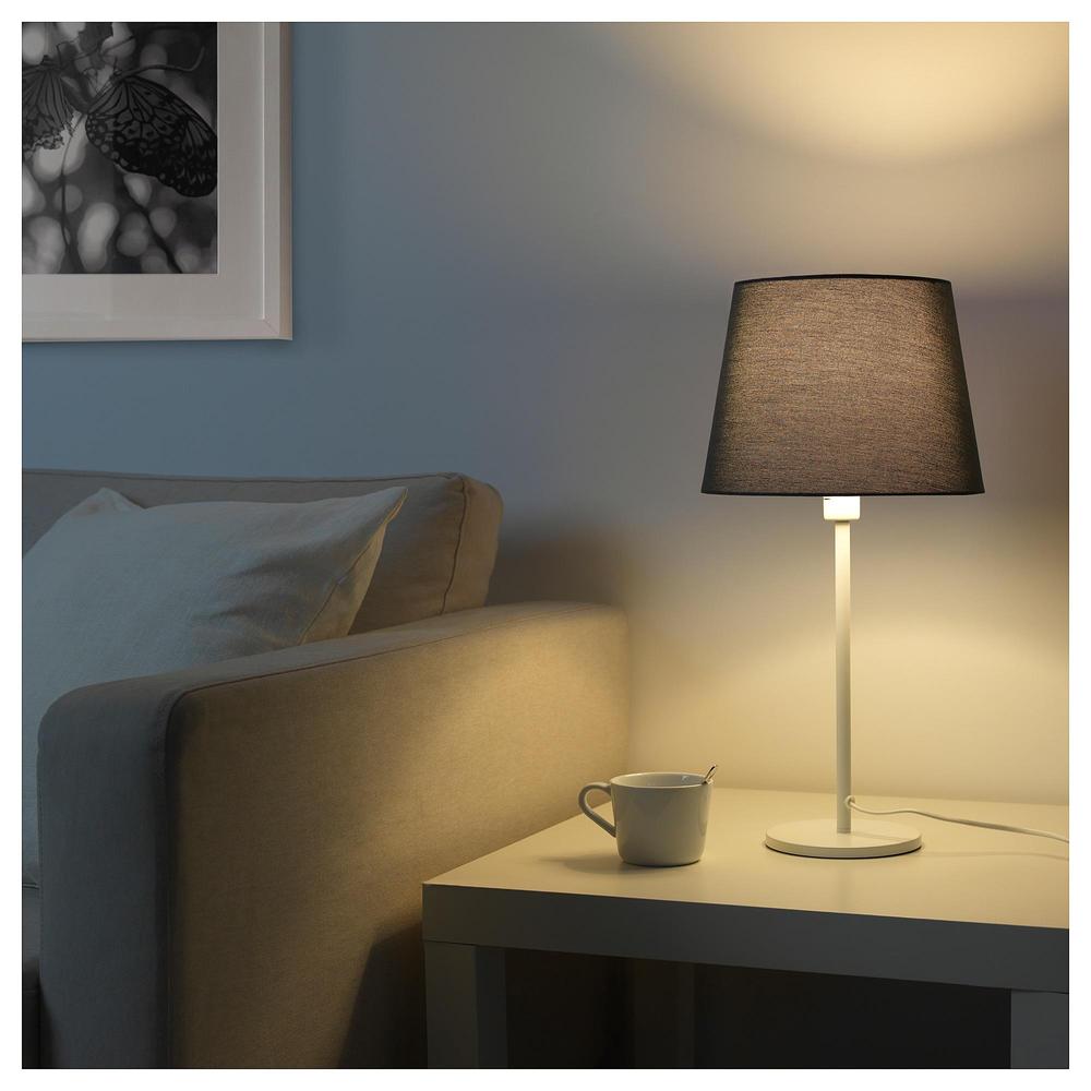 -Текстильный абажур, мягко рассеивающий свет, создает в комнате уютную и располагающую атмосферу.
