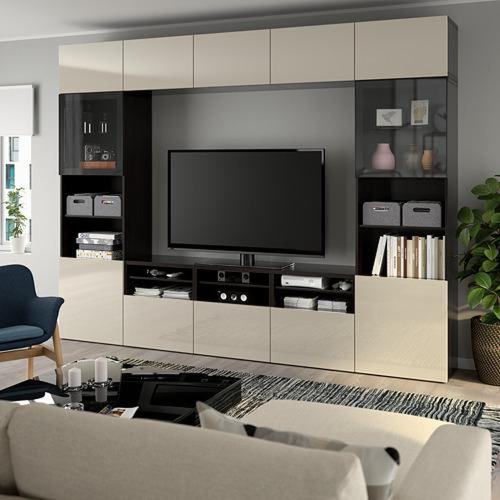 BESTÅ шкаф для ТВ, комбин/стеклян дверцы