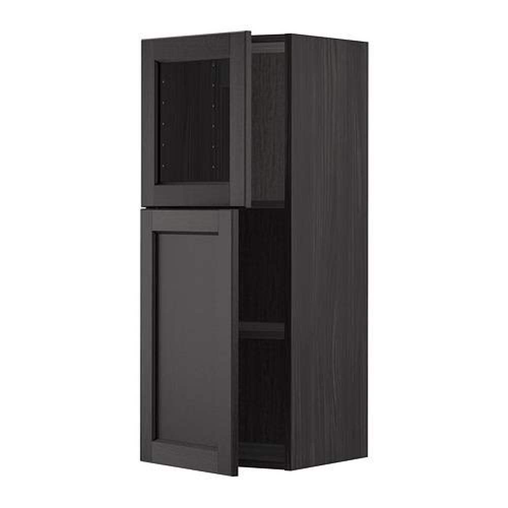 METOD навесн шкаф/полки/дверь/стекл дверь черный