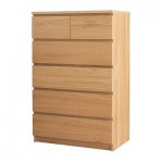 МАЛЬМ Комод с 6 ящиками - дубовый шпон/зеркальное стекло