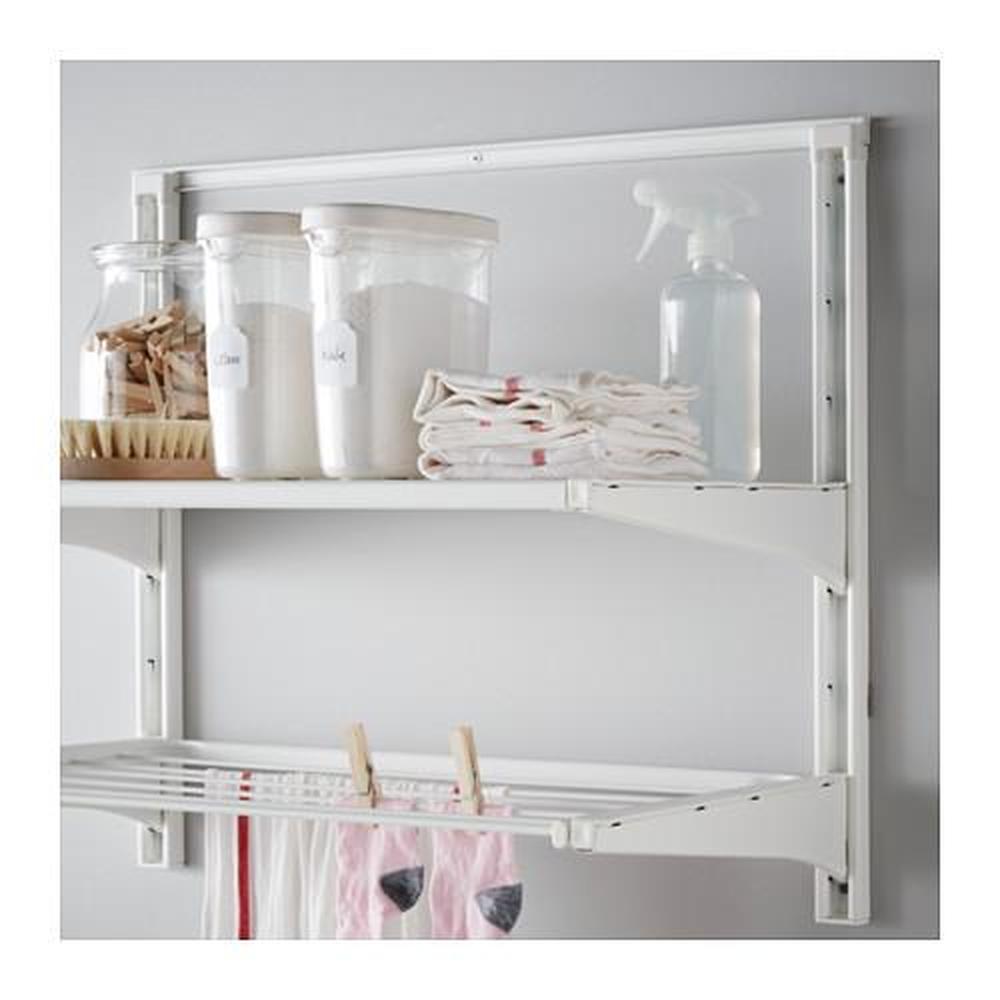 Шины АЛЬГОТ – основа настенной комбинации для хранения. Консоли АЛЬГОТ, на которые вы можете установить полки или другие аксессуары, вставляются в настенные шины до щелчка. Никакие инструменты не нужны.