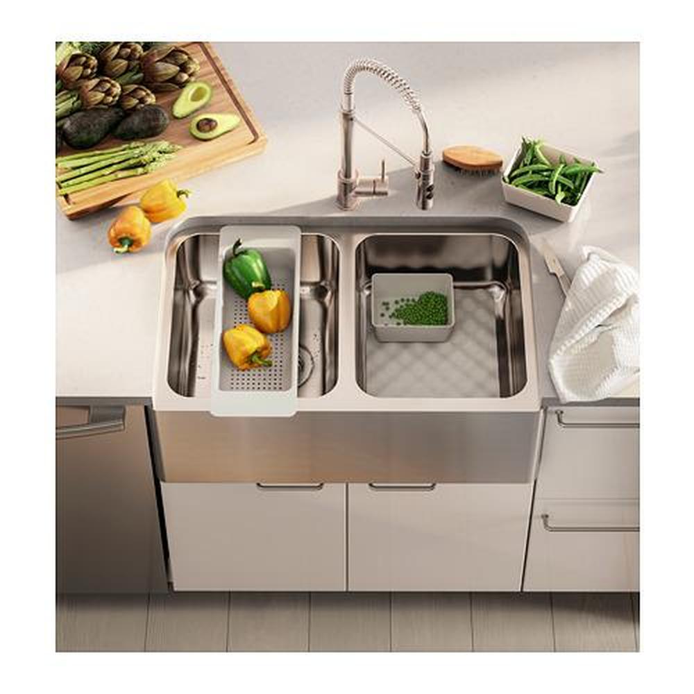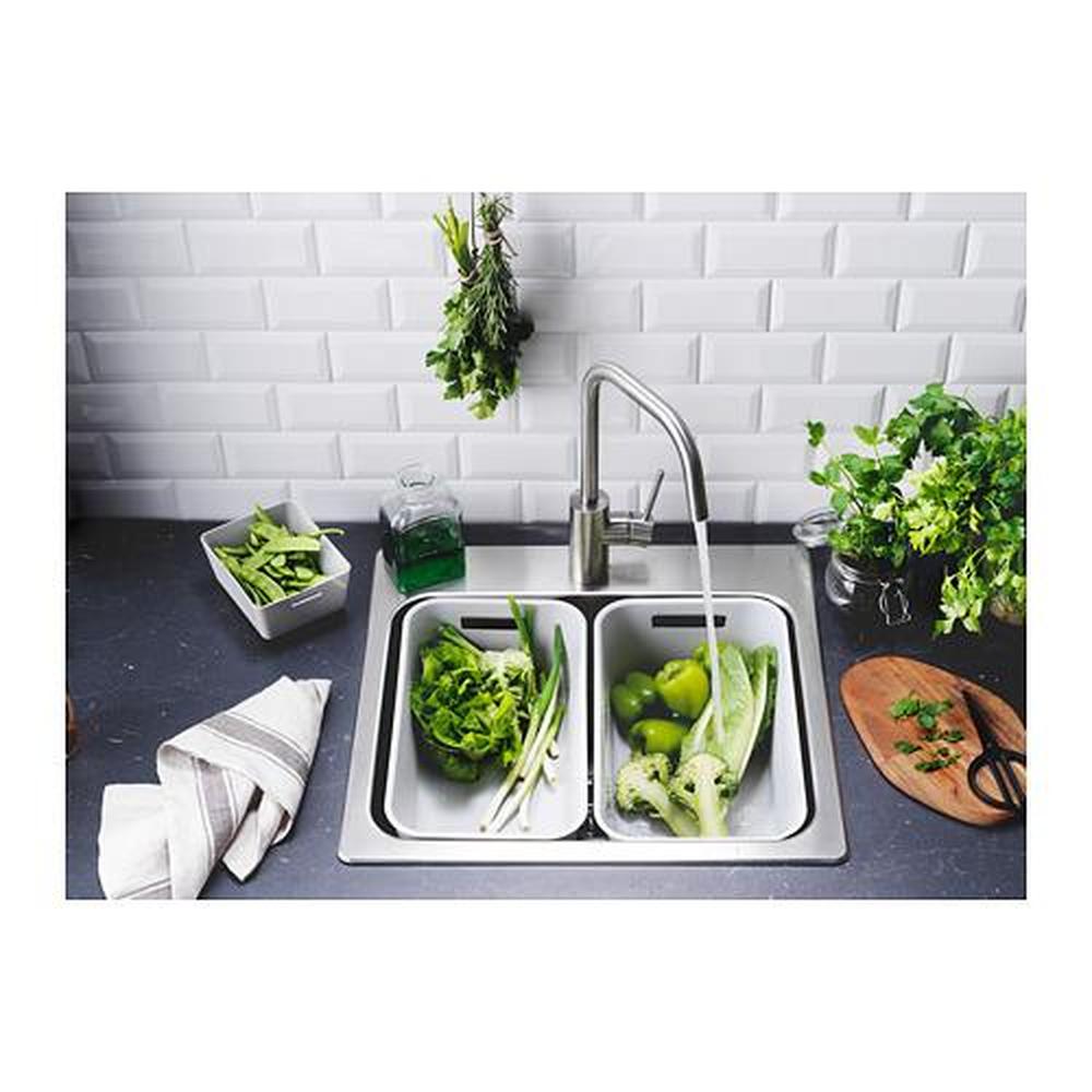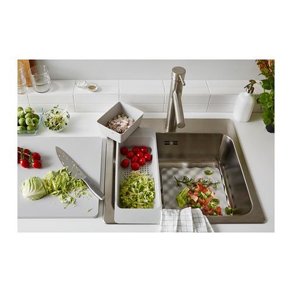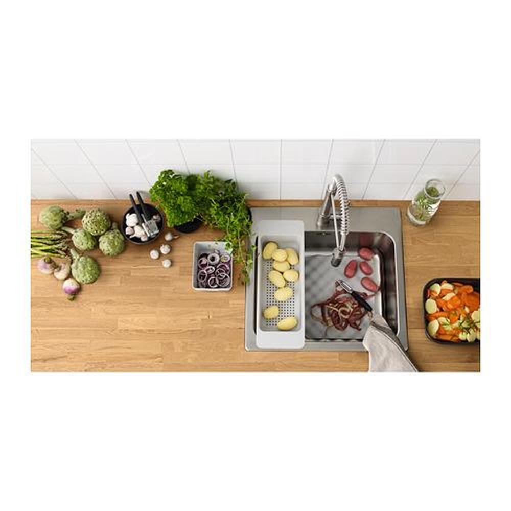 Идеально вставляется в дуршлаг ГРУНДВАТТНЕТ и позволяет разделить разные продукты.