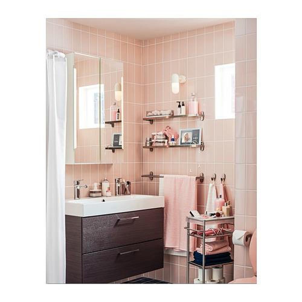 Благодаря бортикам шампуни, гели для душа и т.п. не упадут с полочки.