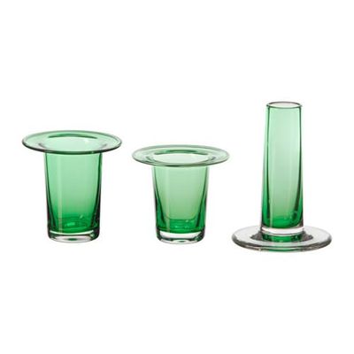 В набор входят 1 ваза высотой 10 см, диам. 7 см, 1 ваза высотой 7 см, диам. 7 см и 1 ваза высотой 5 см, диам. 7 см.